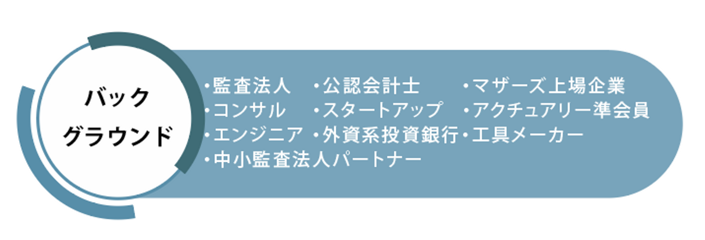 シクミヤでは公認会計士をメインとしたチーム組成を行っておりますが、バックグラウンドは多種多様です。この図はカオスマップ化したためボツとなった会社紹介資料(Slackにて供養済)から引用しているのですが、バックグラウンドの違うメンバーが集まることで多方面での知見を活かした提案がクライアントにできることがシクミヤの強みと考えています。