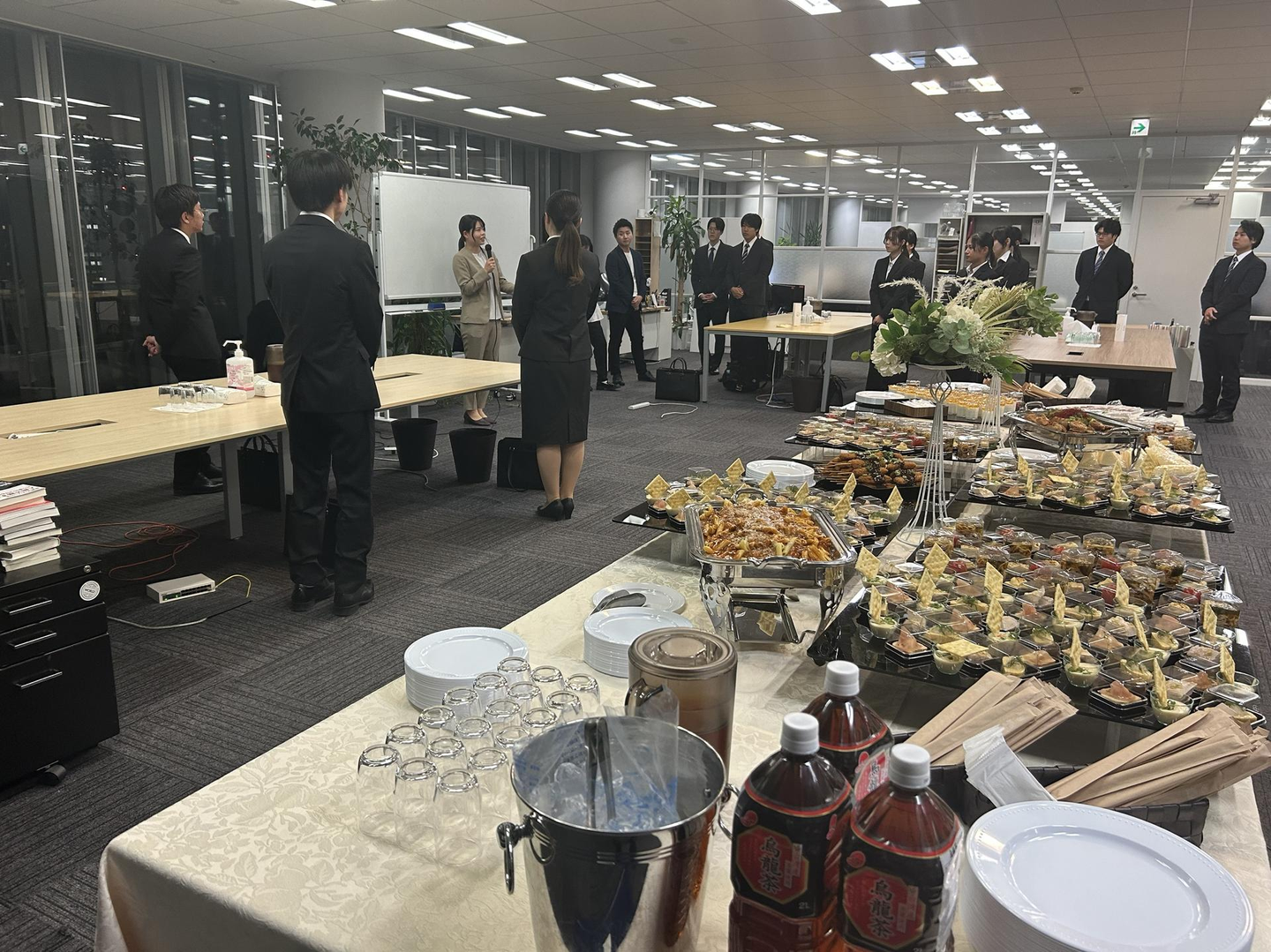 式後は雇用契約の説明を行い、現本社で立食パーティー!