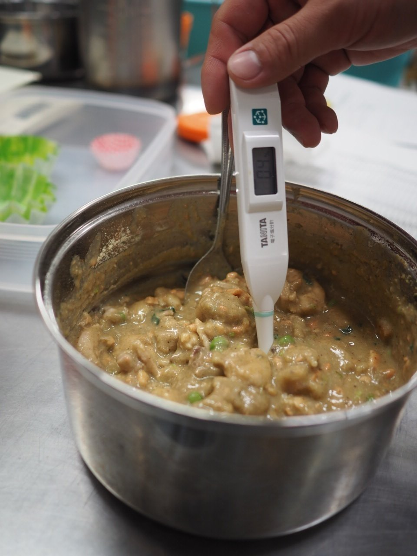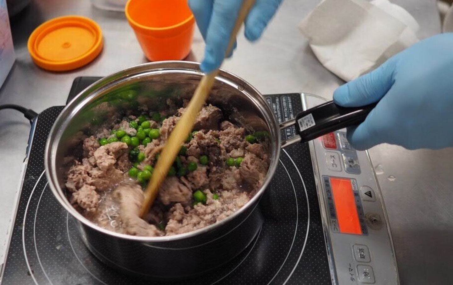 また、何度くらいの温度帯で作るか、塩分濃度はどれくらいなのか、逐一チェックしながら試作を進めていくことも大切です(おやつや味の濃いウェットフードと比較すると、ユニアムは1/5〜1/6の塩分濃度)。