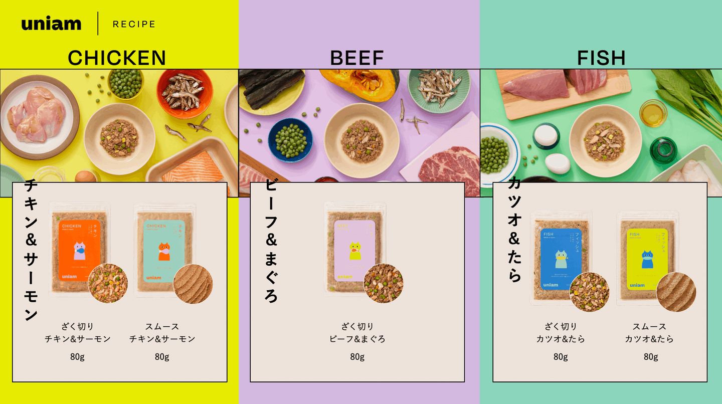 そんな想いから私たちは、日本で初めての、ねこ専門フレッシュフードフードブランド「uniam(ユニアム)」を立ち上げました。