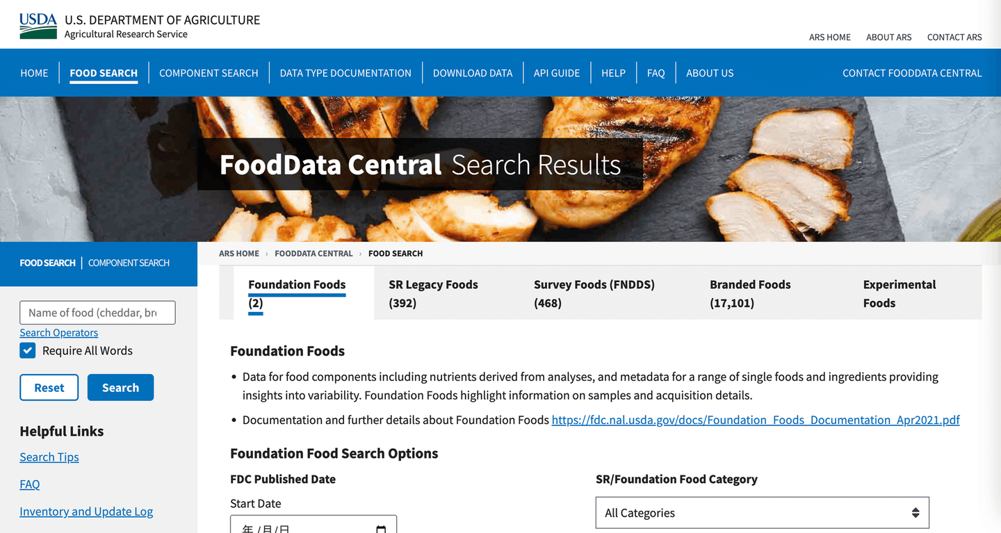 米国の食品成分データベース