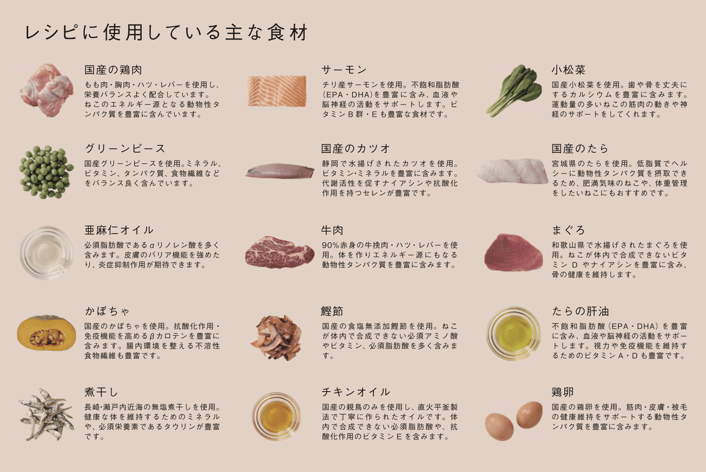 わたしたちニンゲンと同じ品質の食材を使用