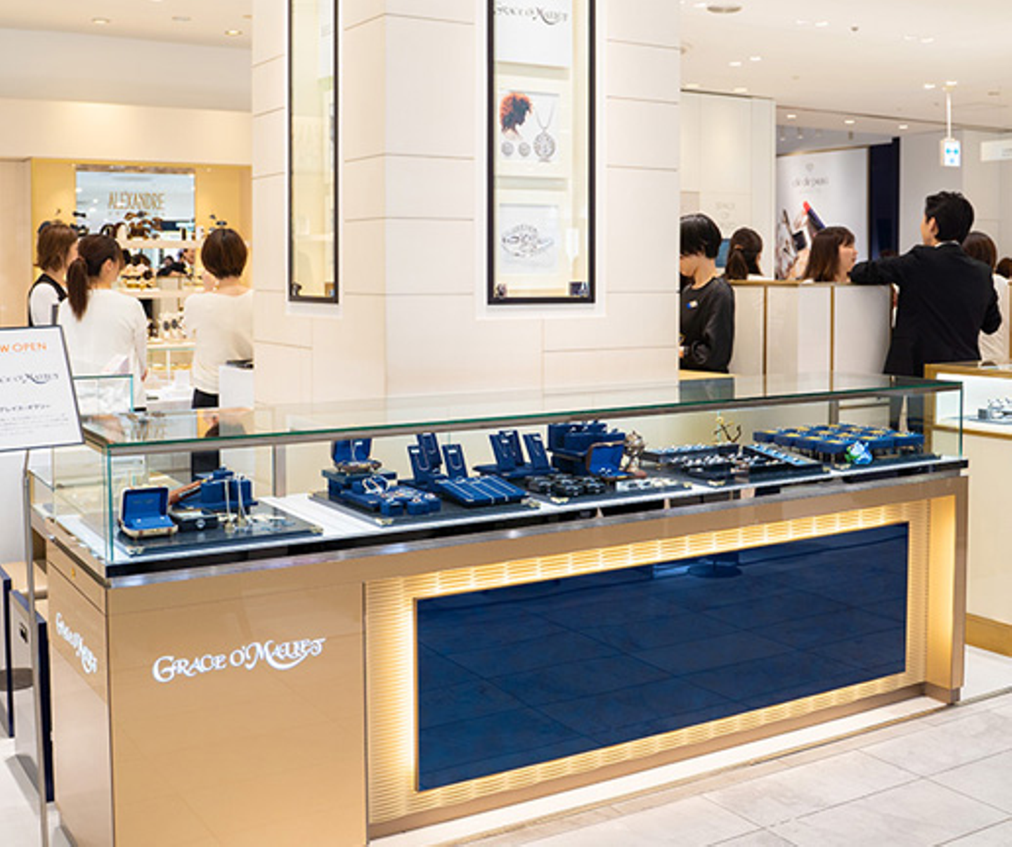 宝飾事業として銀座2店舗目となる「グレイス・オマリー松屋銀座」をオープンし、品質に厳しい銀座の顧客層からもご好評の声をいただきました。EC部門として自社直営ネットショップをオープンし、楽天市場やヤフーショッピングでの販売ノウハウを活かし、さらなるユーザー層拡大を狙いました。