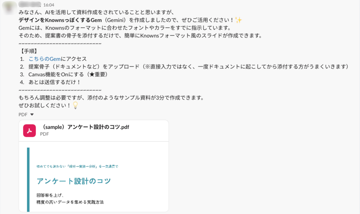 社内には「AI活用チャンネル」が設置され、「このプロンプトで業務効率化できた」「こんなツールが便利」といったナレッジが日々共有されています。最も貢献したメンバーを表彰する「AIアワード」などの企画もあり、トップダウンでやらされるのではなく、メンバー自身が「どうすれば楽になるか?」「どうすれば面白くなるか?」を楽しみながら模索しています。