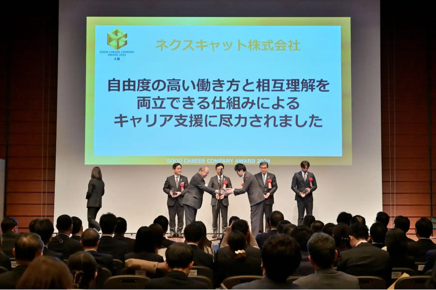 従業員の自律的なキャリア形成(職業生活設計・働き方の実現)を支援するための取り組みを行っている企業を表彰するグッドキャリア企業アワードで、このたびネクスキャットが大賞(厚生労働大臣表彰)を受賞いたしました。