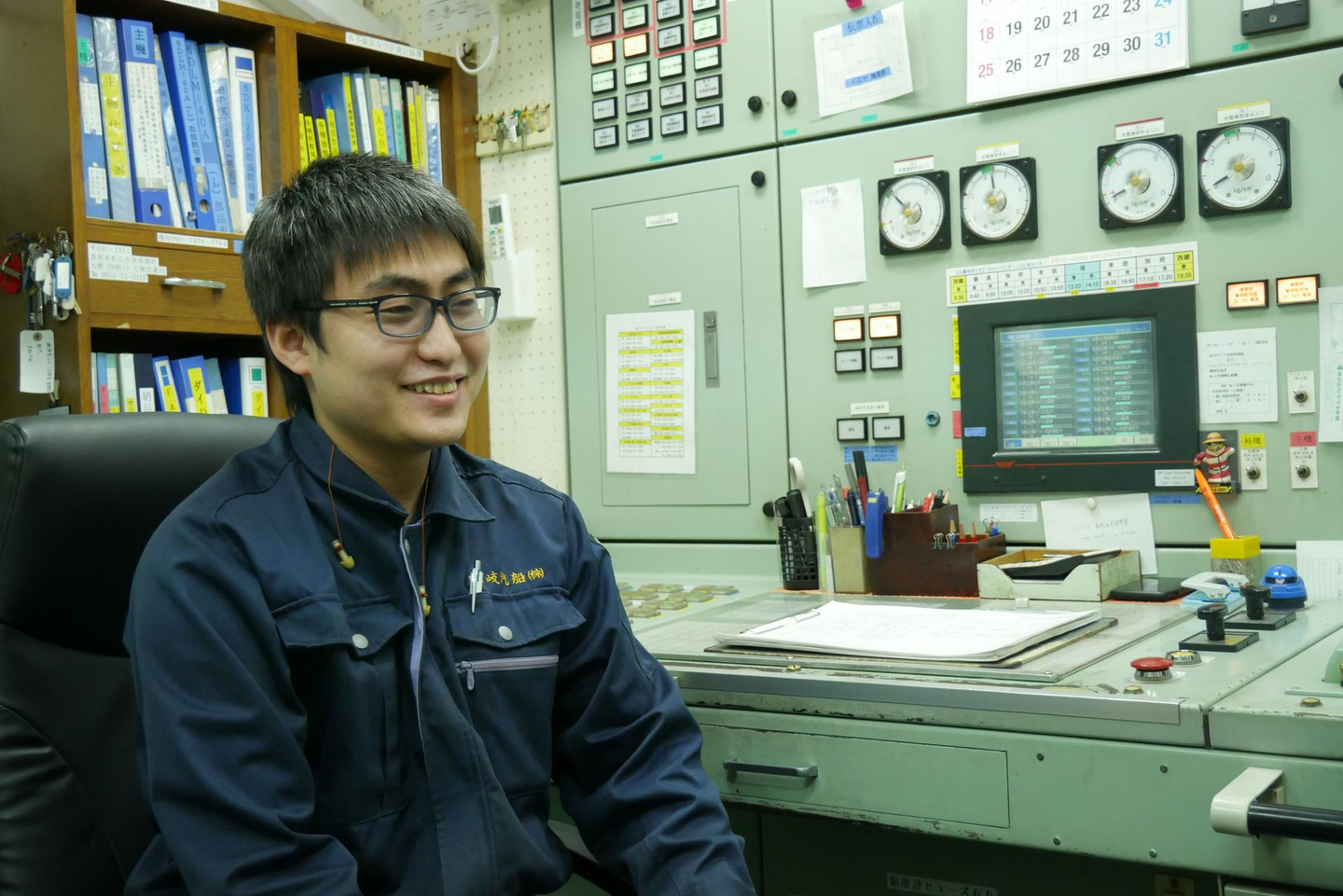 新卒では県内のタグボート会社(大型船の入出港を補助したり、船を押したり引いたりする作業船)の機関士として約1年間働いていました。