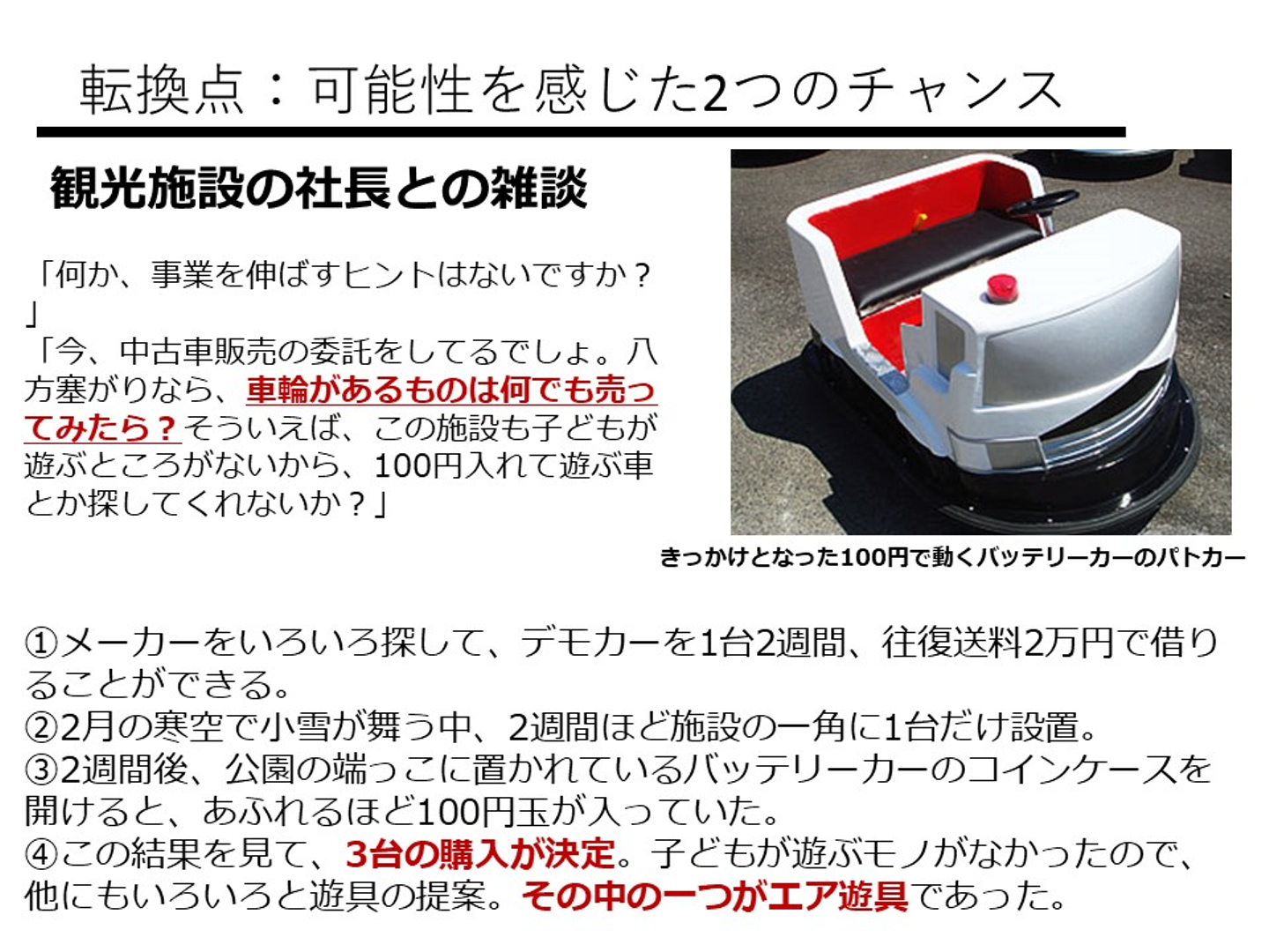そして、イベント事業につながるバッテリーカーを見つけました。