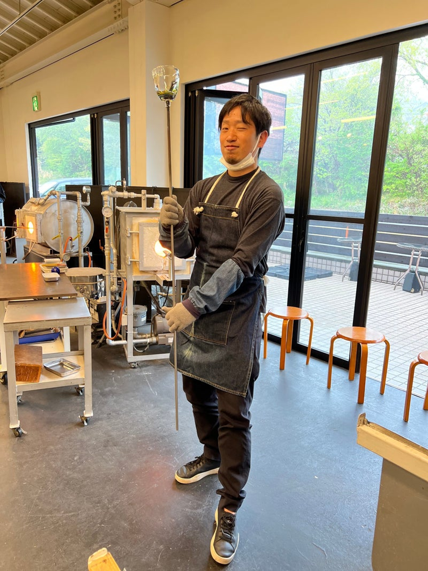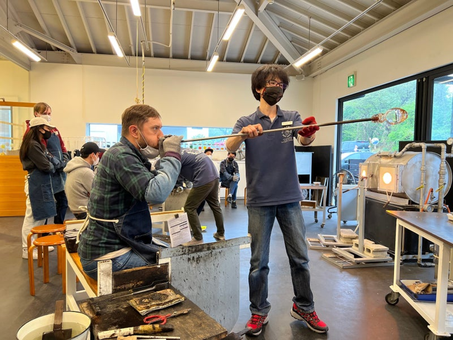 ひとつめのアクティビティは、吹きガラス体験!プロダクト開発に携わるものなら、こだわりを持って最高の製品を作ってみせよ!