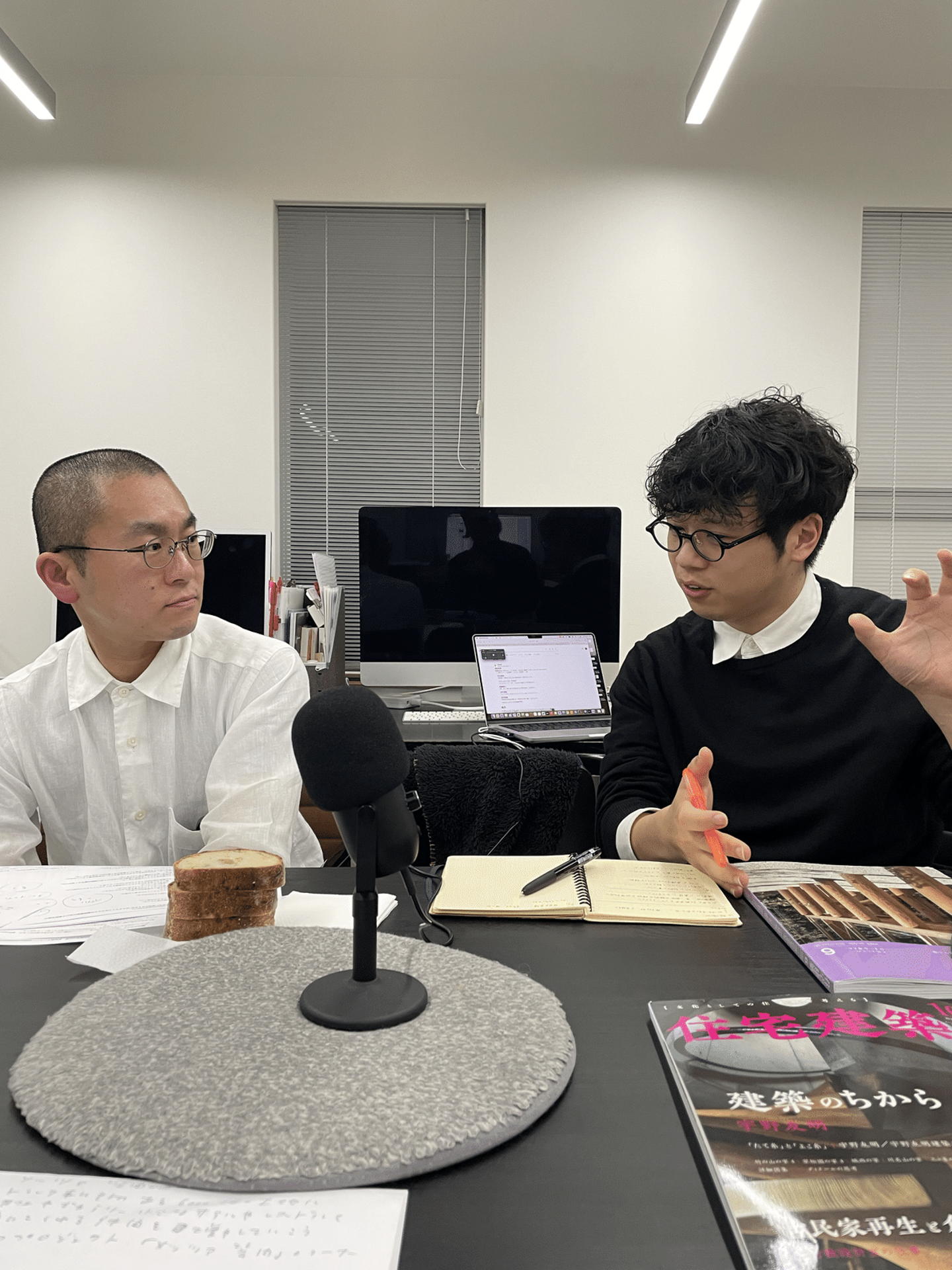 余談ですが、2025年2月から、暮らし図の鯉渕さんと私笹目、そして所員のシバタの3人で、podcastを初めました。その名も「聞けばコイする建築家」