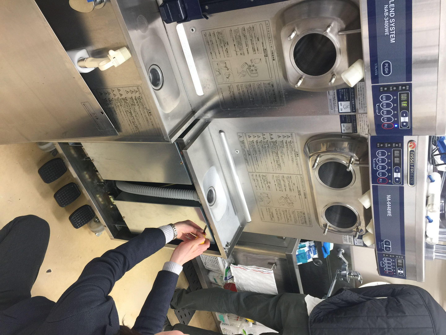 ソフトクリームを絞り出すためのレバーの部分は、モーターを取り付けて自動で絞りだせるようにしています。今回は中もどのようになっているのか少しみさせて頂きました。ハードウェアの変更も一部自分たちで手がけています。