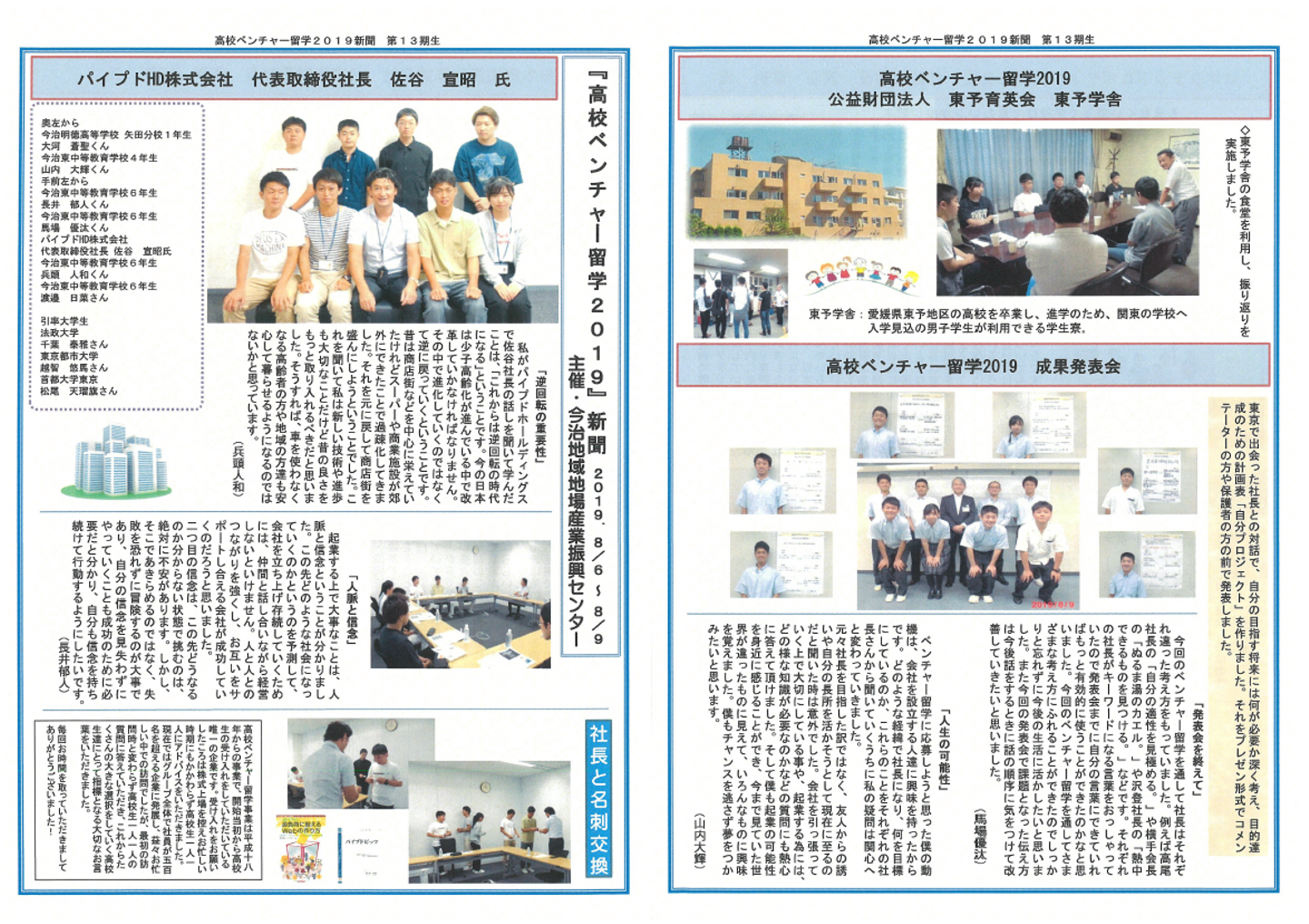 掲載媒体:「高校ベンチャー留学2019」新聞(主催・今治地域地場産業振興センター)