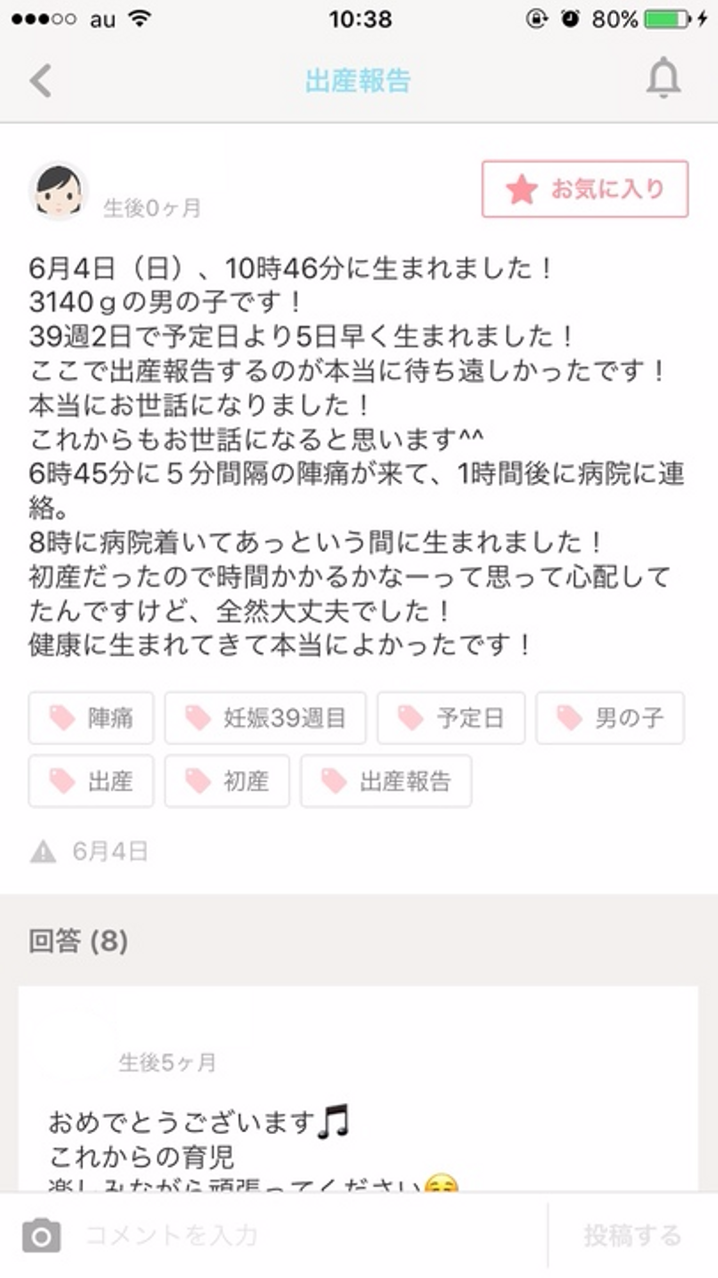「ここで出産報告するのが本当に待ち遠しかったです!」「これからもお世話になると思います^^」