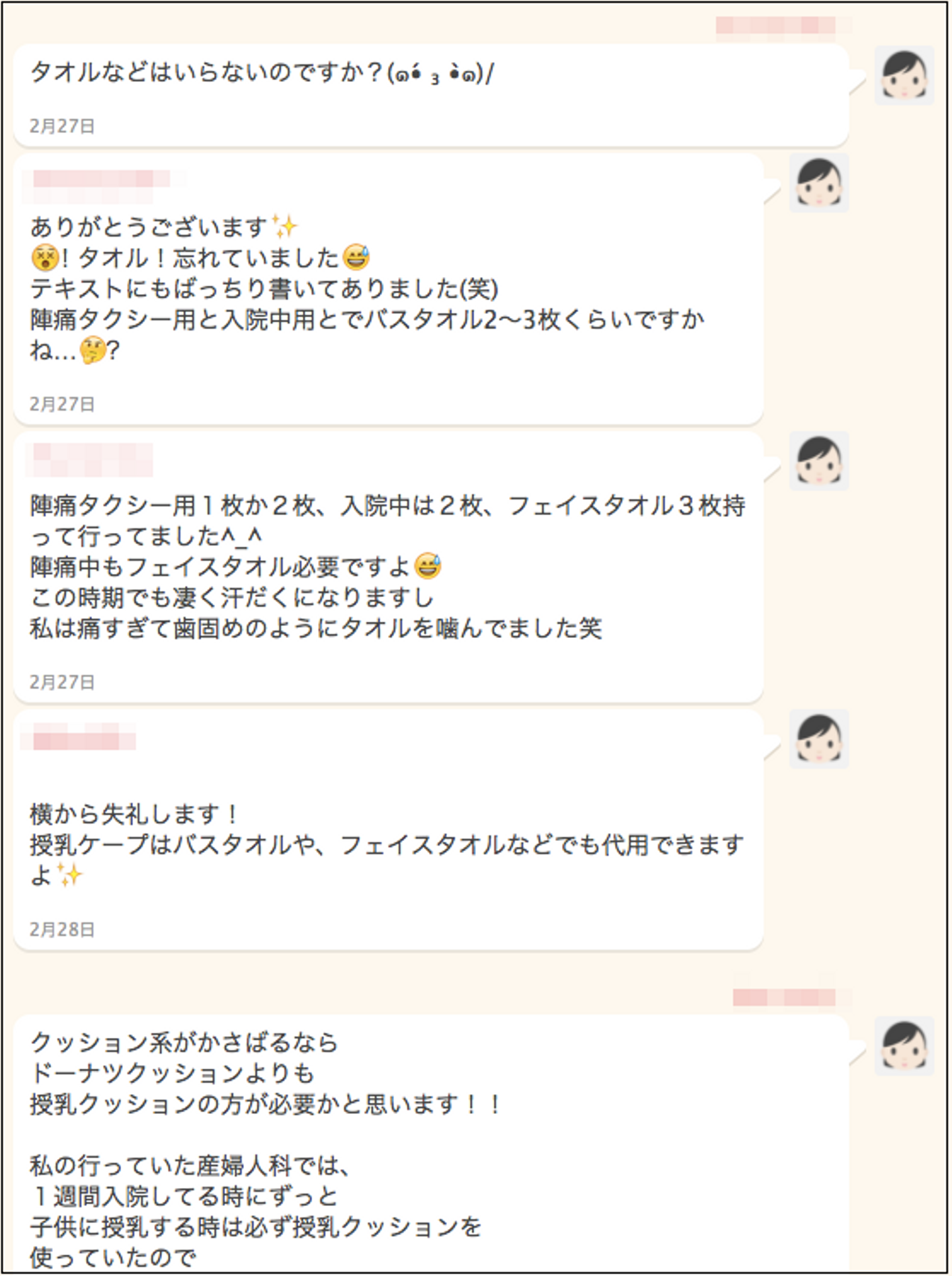 経験者の方たちから色々なアドバイスがもらえて、それらの回答がこれから経験するユーザーさんたちにも役に立つという、ママリQの良いところが表れている質問だなと。