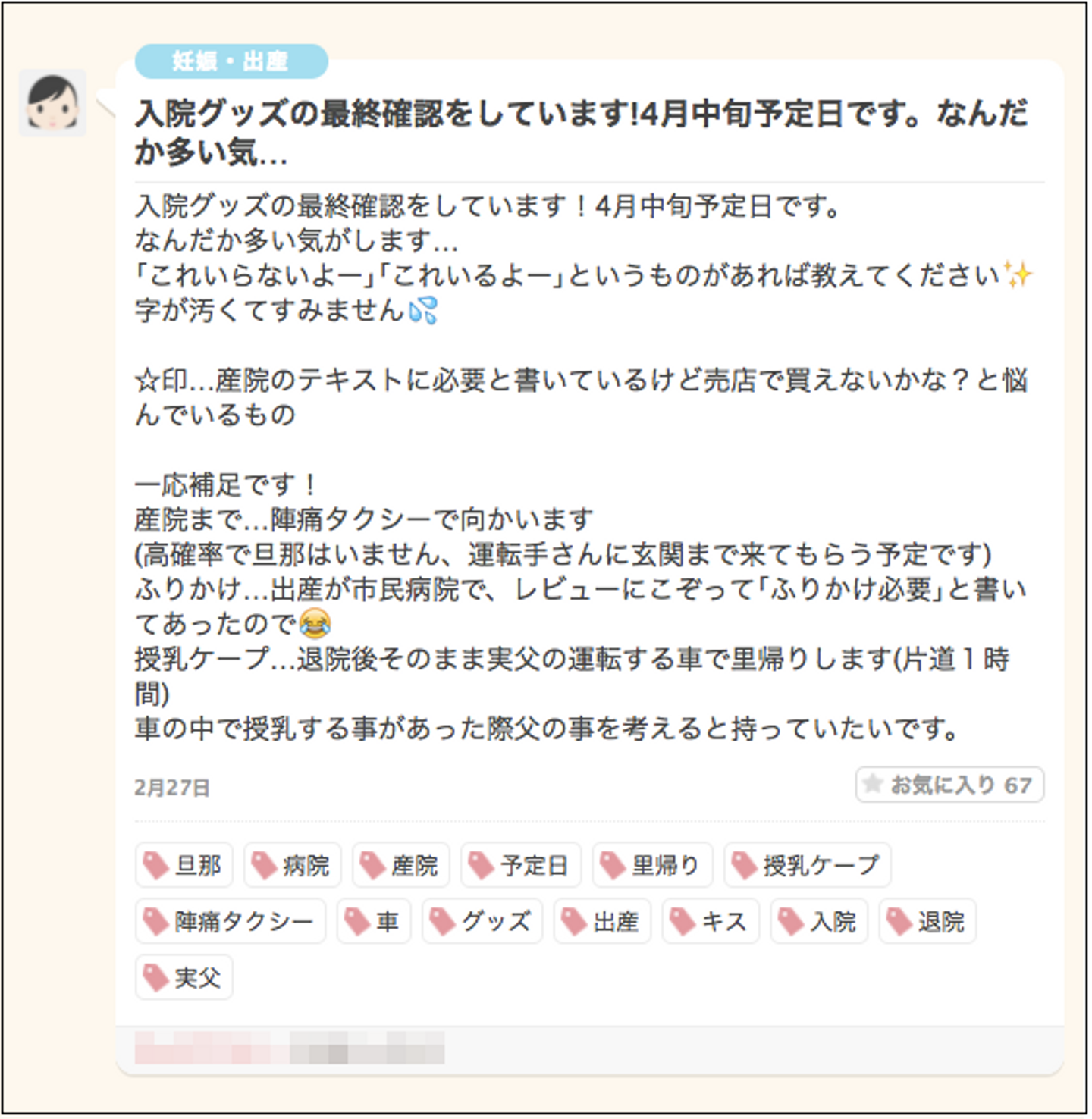 すでに出産を経験している先輩ママたちからたくさんの回答がついていて、私もいつか妊娠したら役立つかもしれないと思って(気が早すぎるのですが笑)お気に入りに登録した質問です。