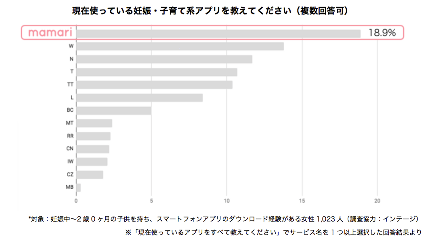 現在利用している専門アプリ第1位は、Q&Aアプリ「ママリ」という結果になりました。2位に約5%の差をつけての1位となりました。