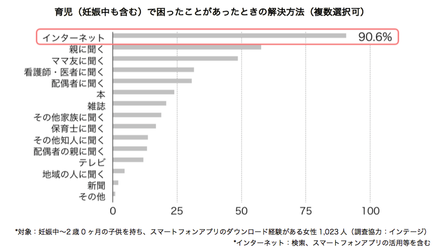 実父母やママ友への相談を抑え、インターネットが第一位という結果になりました。