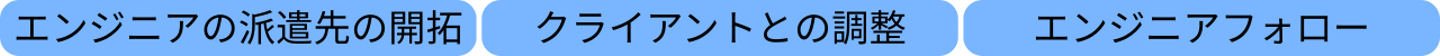 エンジニアの業務相談や課題を丁寧に引き出し、会社として適切に対応しており、案件のミスマッチが発生した場合には速やかに調整を行いエンジニアに負担がかからないよう配慮しています。