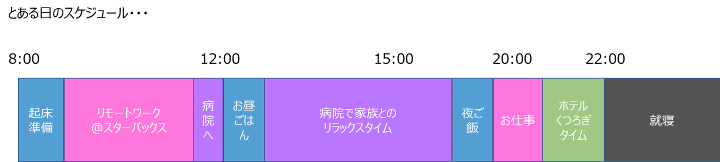 また、正直、全く仕事を休んでというわけには行きませんでしたが、リモートなども併用することで、出社せずとも仕事ができたので、その点もとても良かったです。