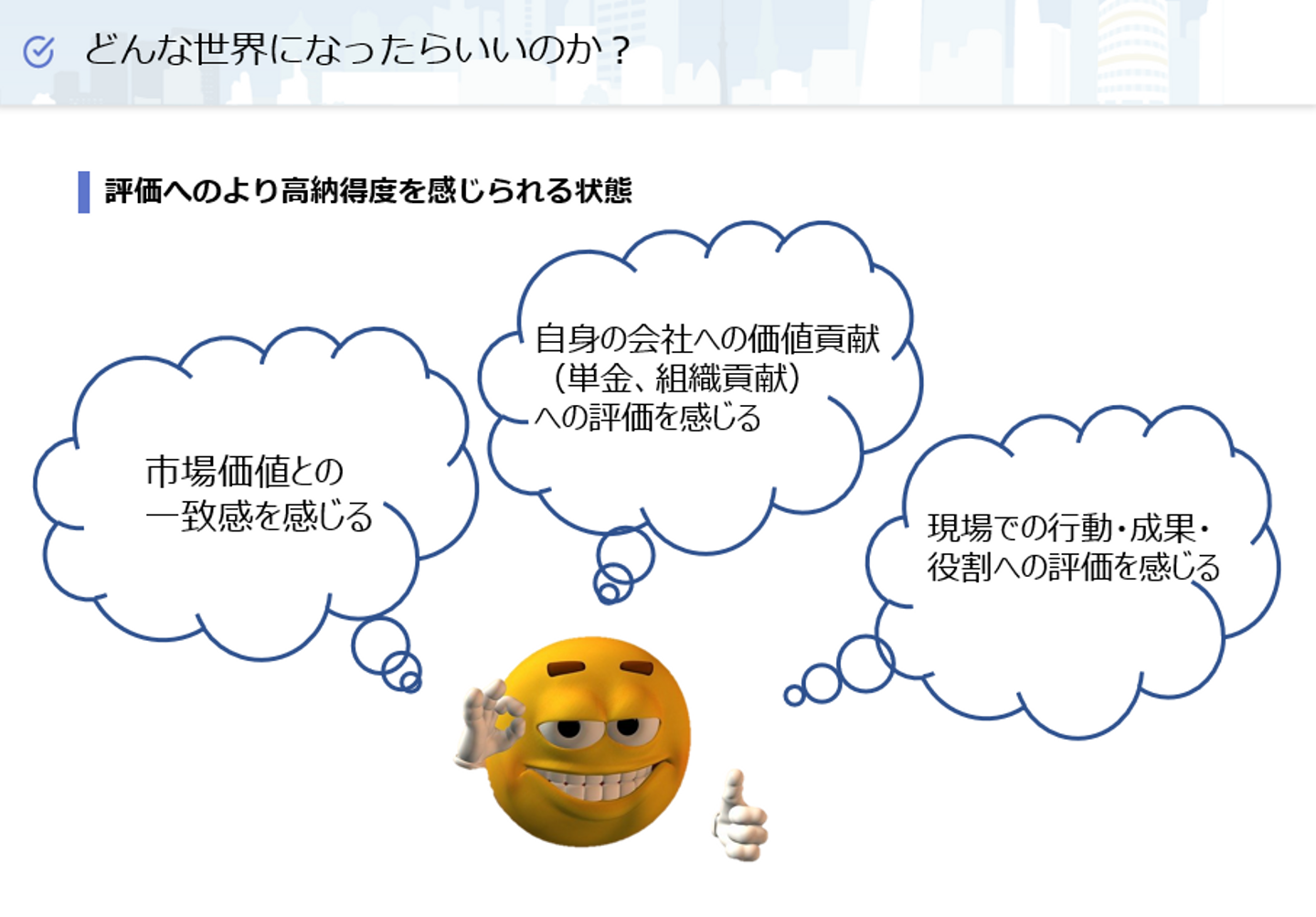 実は、この制度設計にあたり、やはり一番の大物は評価制度自体なのですが、特に課題の中にもあり、ゴール設定にもある