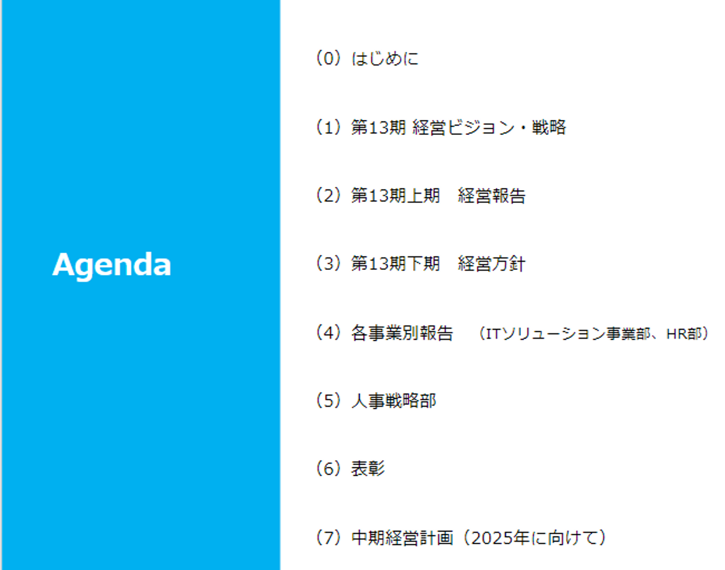 キックオフでは第13期上期(2022年7月~12月)の振り返りと、下期(2023年1月~6月)の展望が、経営と事業部長より伝達されました。
