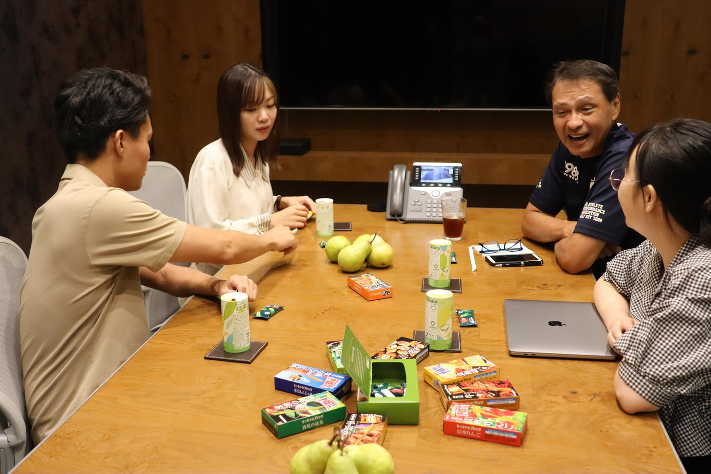 役職や職種、年齢関係なくフラットにコミュニケーションが取れる環境であり、この日はリンさんが実家のベトナムから送られてきたラフランスをおすそ分けしてくれました。