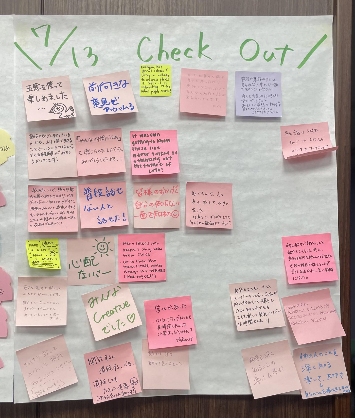 よく動き、話し、考えた1日目の研修はここまで。本日の体験や気づきが詰まった言葉たちです。