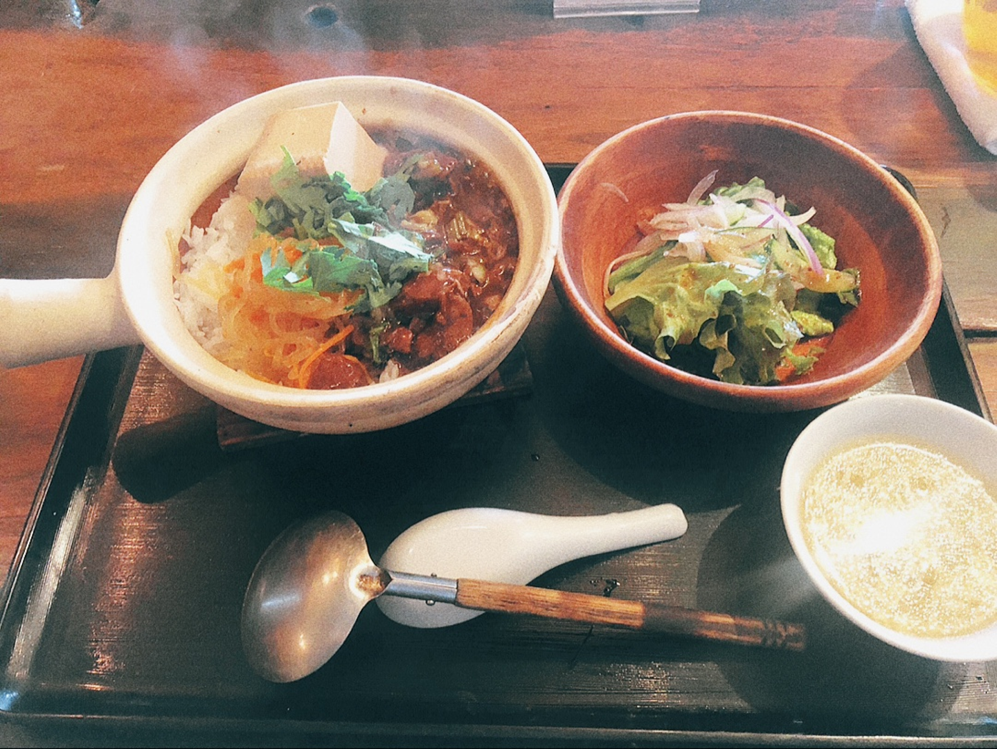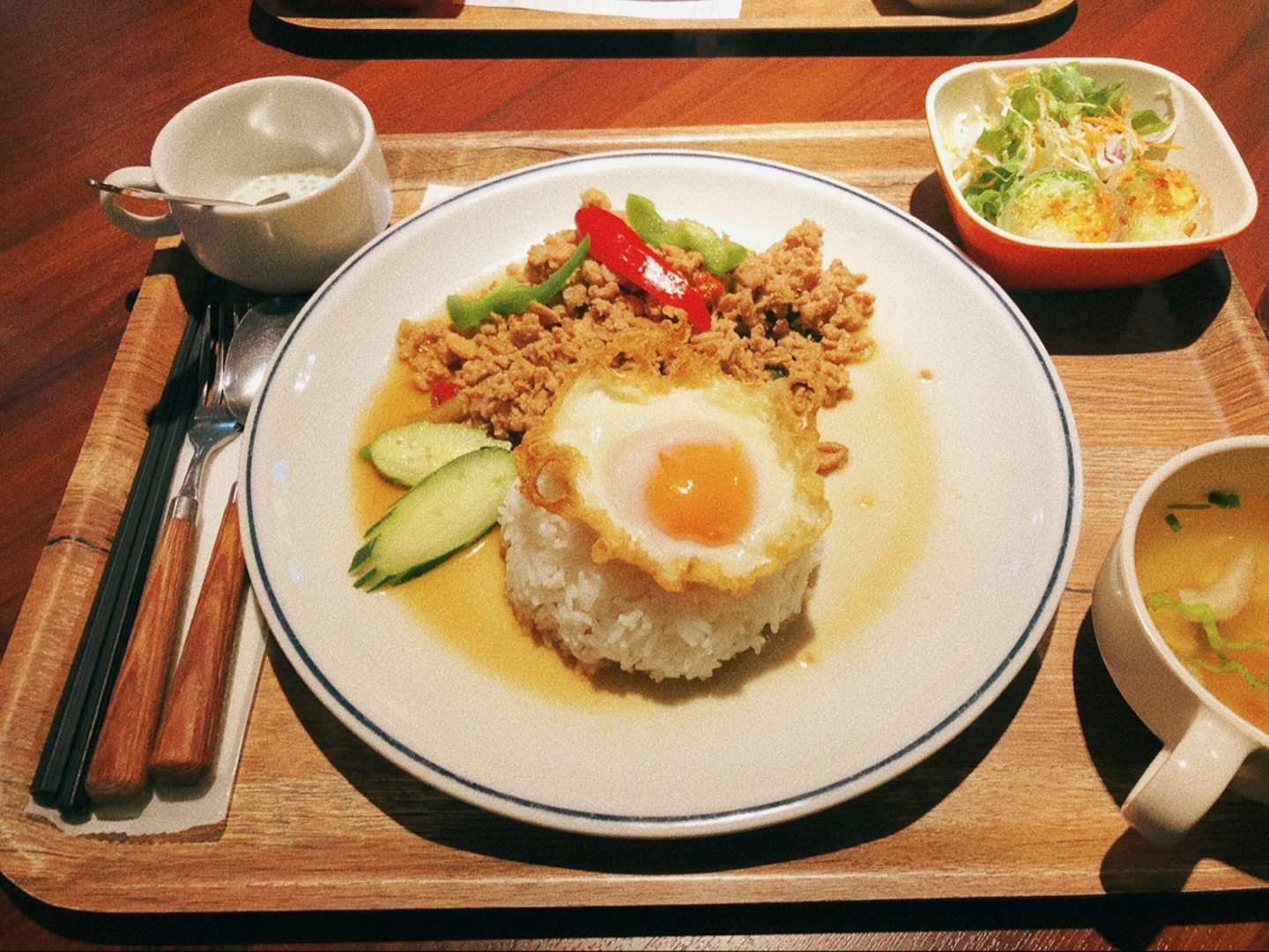 オフィスのちょうど向かい側にあるタイ料理屋さん。天井が高くて広々としているので、なんだかリゾートのレストランっぽいです。ランチはドリンクバーもついていて、タイ茶やタイミルクティーなんてドリンクも選べます。激辛マニアにはたまらない「ファイヤーラーメン」もあるそうです・・!
