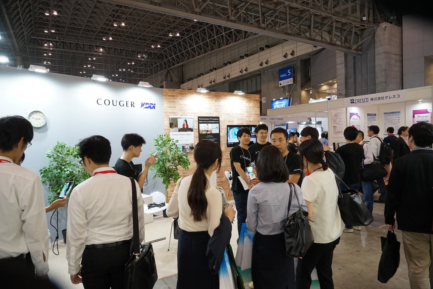 2018年6月13日~6月15日の3日間、幕張メッセで開催された国内最大級ICTイベント「Interop Tokyo」にCougerが開発するバーチャルヒューマンエージェントを連携先のKDDI社と共同で展示しました。3日間で来場者は14万人を超えるほどイベントは盛り上がりました。