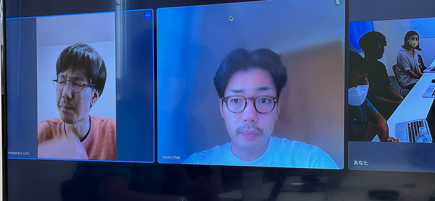 (リモートワーク中のお二人にはオンラインで参加いただきました!)