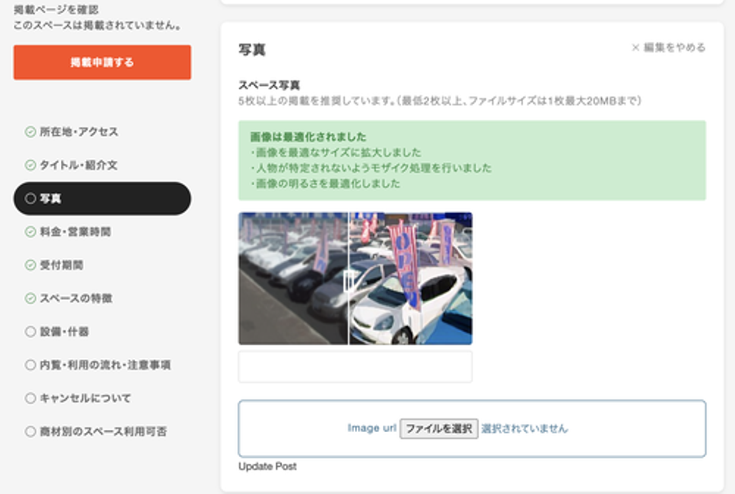 現在、 SHOPCOUNTERに掲載されているスペース写真には、解像度が粗かったり、画質が低いものが一部存在します。 これだと利用者へのユーザビリティの面でも好ましくありません。また、Airbnbなどでは売上向上に必要な要素として画像の質の重要性が証明されています。