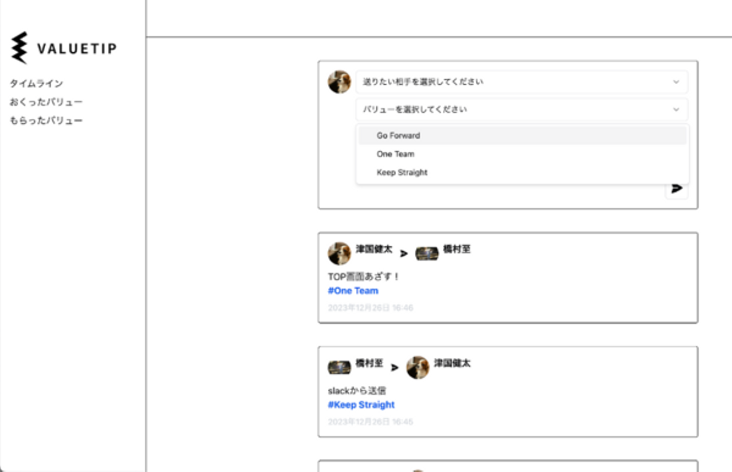 「Valueを体現している人に賞賛を贈るアプリケーション」