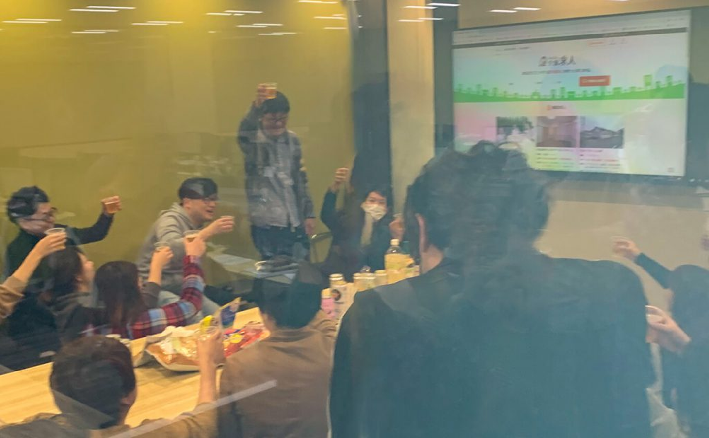 「みんなの介護求人」リリースを祝した打ち上げの様子(2020年1月撮影)。