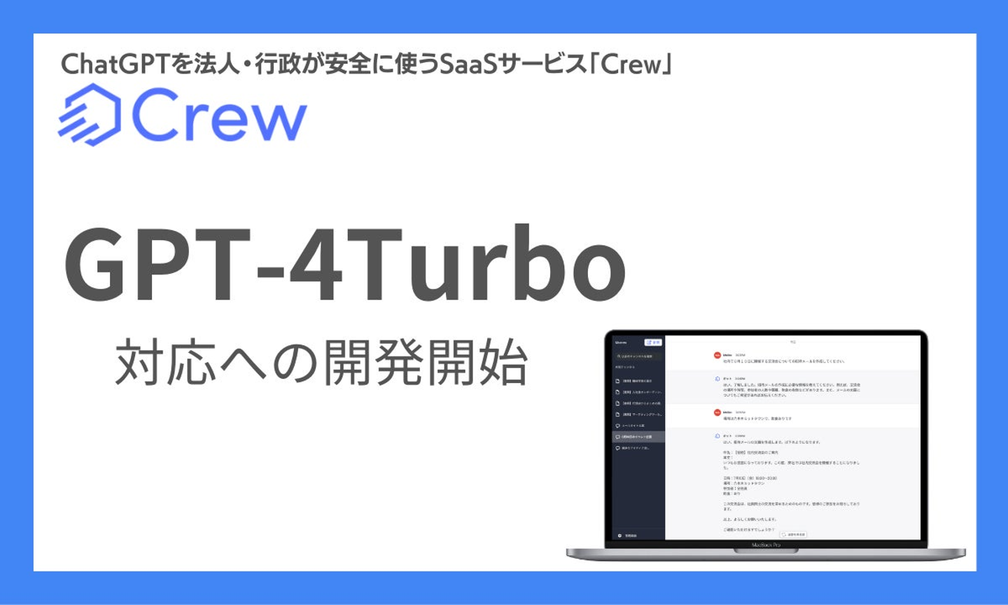 クラフター、ChatGPTをビジネスで安全に活用する業務効率化ツール 「Crew」にて「GPT-4 Turbo」対応への開発開始