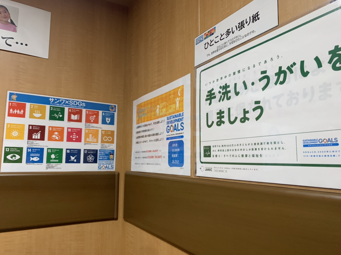 サンワはSDGsにも取り組んでいるので、こんな張り紙もあります。