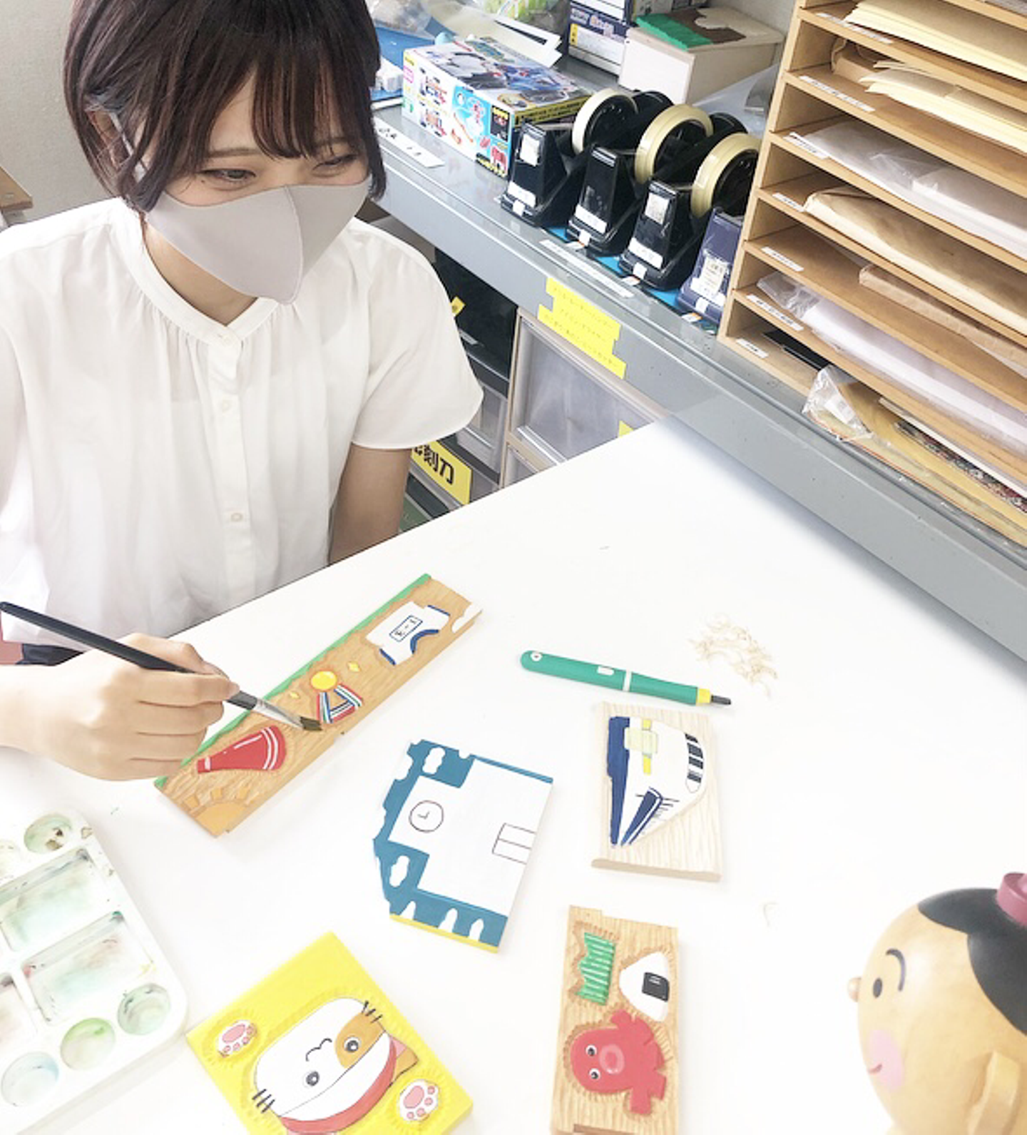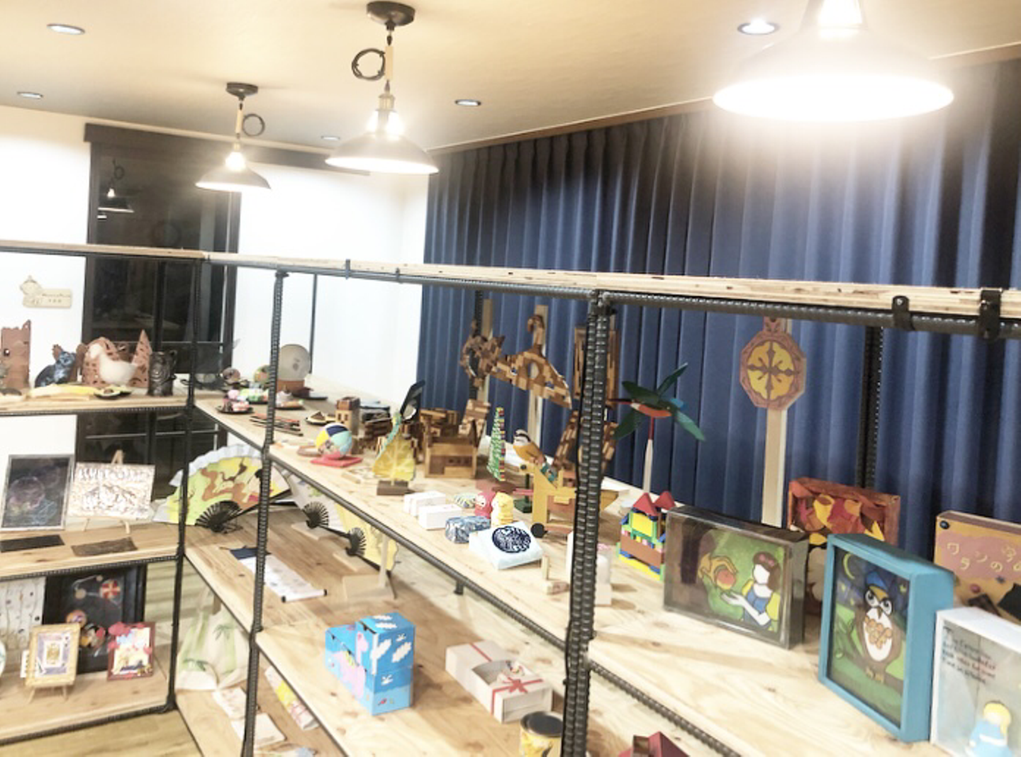 工作室はいろいろな道具や商品が揃っていてものづくりが好きな人にはワクワクするお部屋だね。