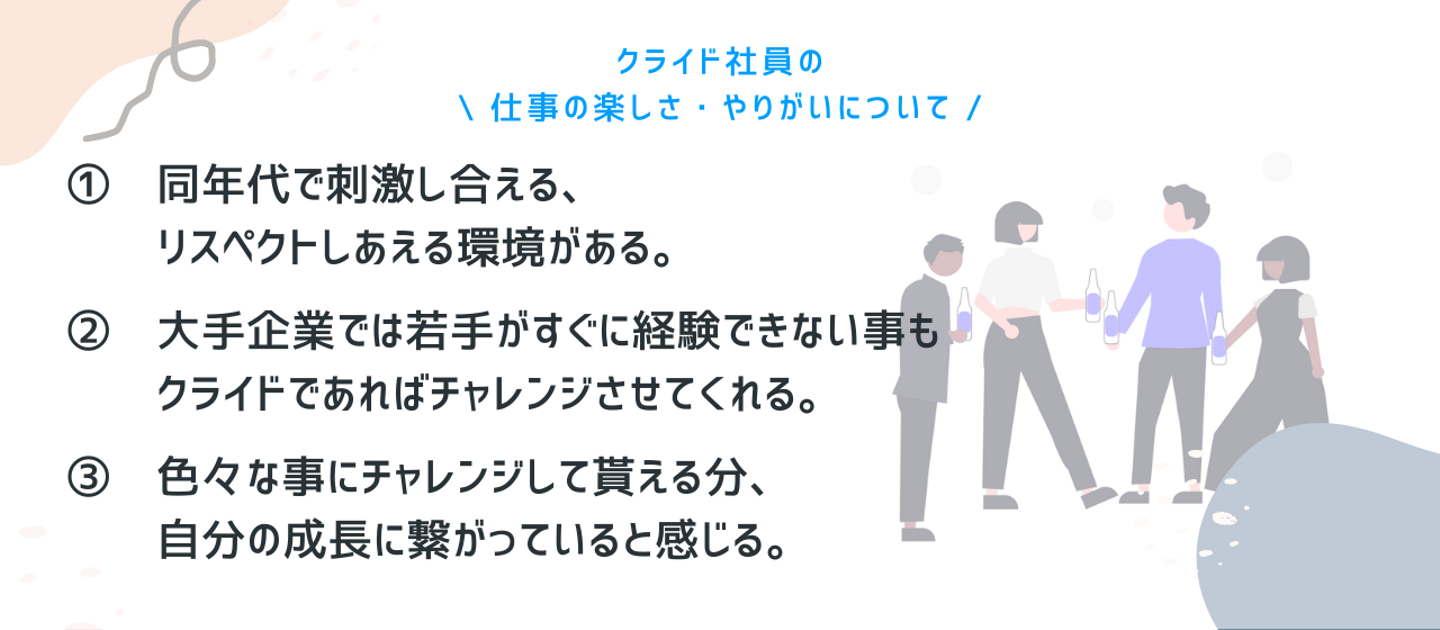 Part3は「クライドならではのコト・モノ」というテーマのもと、「仕事の楽しさ・やりがい」についてです!
