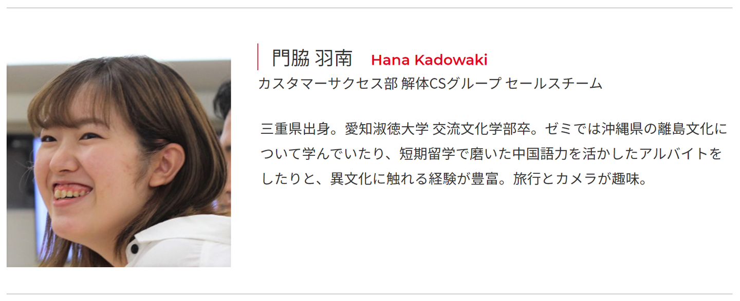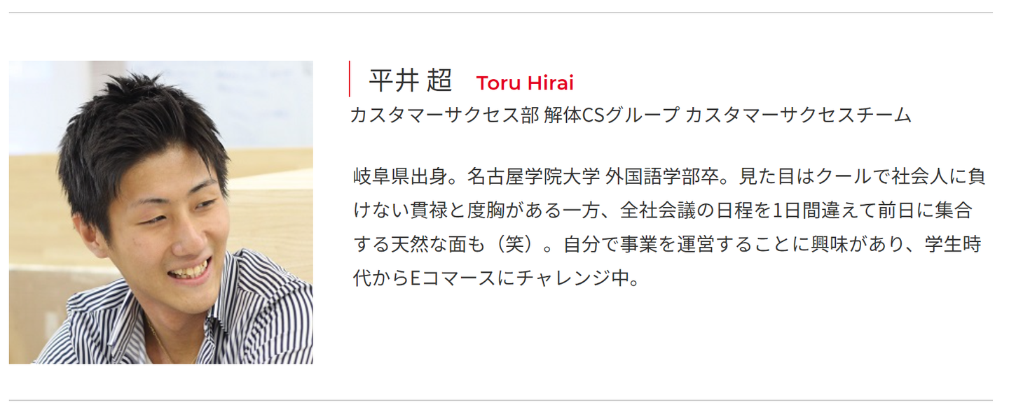 入社してまだ半年程でありながら、自身の物販ビジネスでの経験を元に、サービス改善へ向けた提案をいくつも出してくれるなど、すでに*MVV(ミッション・ビジョン・バリュー)の実現に大きく貢献してくれています。今後のさらなる”Go Boldly”な活躍に期待大です。
