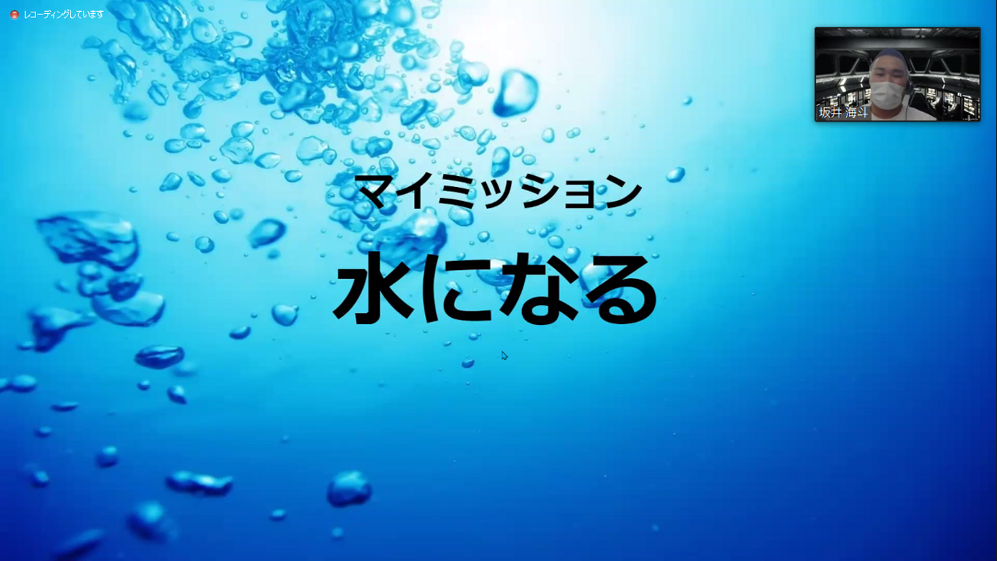 まず「水のように生きる」とは、水は液体であり、入る容器によって形を自在に変えつつも、水として性質が変わらないという特徴を、坂井は「柔軟性」や「最善を尽くすことの象徴」として捉えているといます。クラッソーネで、新社会人として未体験の連続な日々を過ごす中で、今いる環境や状況に応じて、水のように自分を変化・成長させ、常に最適化していくことを目指すと説明していました。