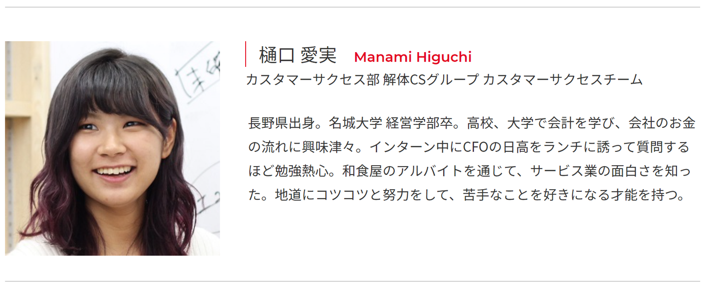 彼女のマイミッション宣言で印象的だったのが、樋口のマイミッション宣言を聞いた上司である杉本が、「数年後、充実していた瞬間を思い返すときに、『今』と答えてもらえるよう、日々バックアップしたい」と感想を述べてくれたときに、クラッソーネらしいチームの一体感が垣間見えた気がして、改めて、お互いがお互いを思い遣れる会社だなと実感しました。
