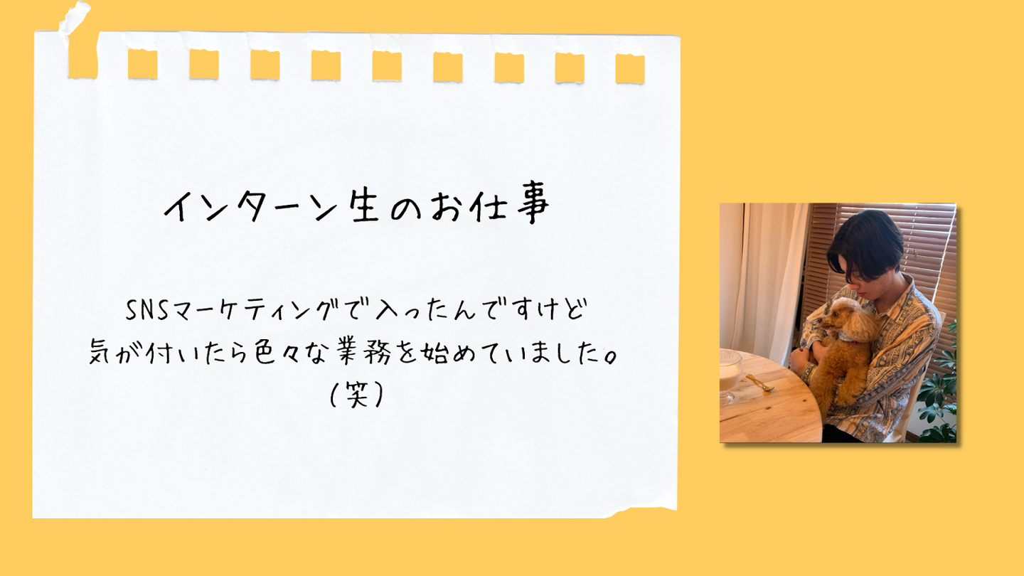 竹之内 そうですね、仕事に関してひとことで表すのであれば「色々な経験が出来る」ですかね!SNSマーケティングで応募したんですけど、SNS運用だけではなくライターの仕事もさせて頂いたり、本当に様々な仕事を任せていただいている印象です。