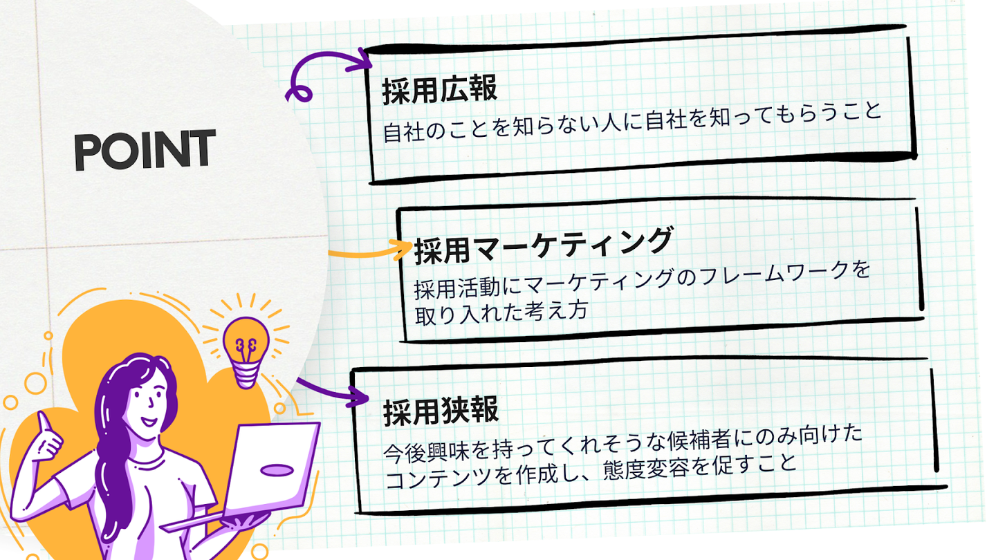 「採用広報」「採用マーケテイング」「採用狭報」の違いを簡単にシェアしようと思います!