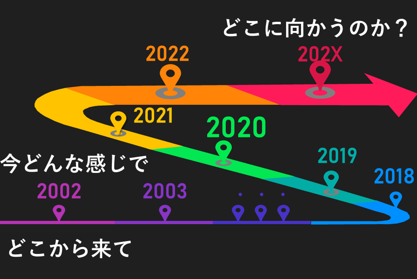 藤井: 会社の魅力を伝える上で大事なのは、CRHという会社がどこからきて(過去)、今どんな感じで(現在)、どこに向かうのか(未来)ということを伝えていくことだと感じています。それを伝える方法としてタイムラインというものを作ってみました。