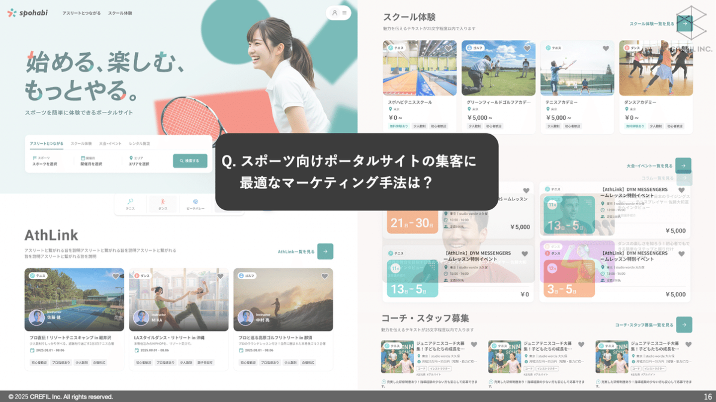 デジタルマーケティングに必要な基礎知識を学びつつ、自社サービスのSpohabiを例に挙げたワークショップ形式を取り入れています。