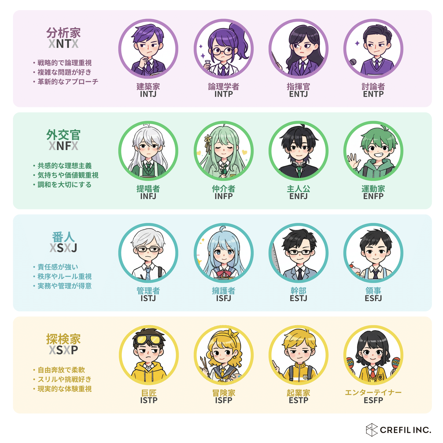 16タイプの性格診断、社員全員でやってみた|1番多いのは?チームの雰囲気も性格タイプからわかる!|CREFIL
