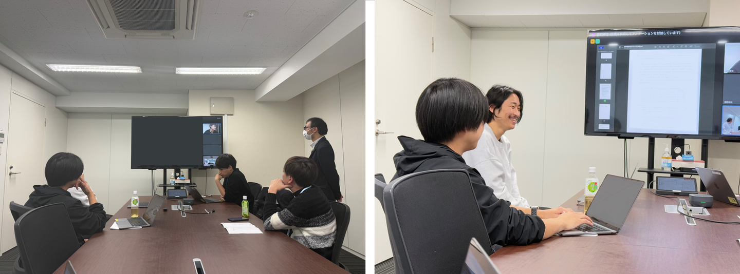 月に1度、対面(遠方組はオンライン)で集まり、月次の進捗確認と成果の報告をしています。