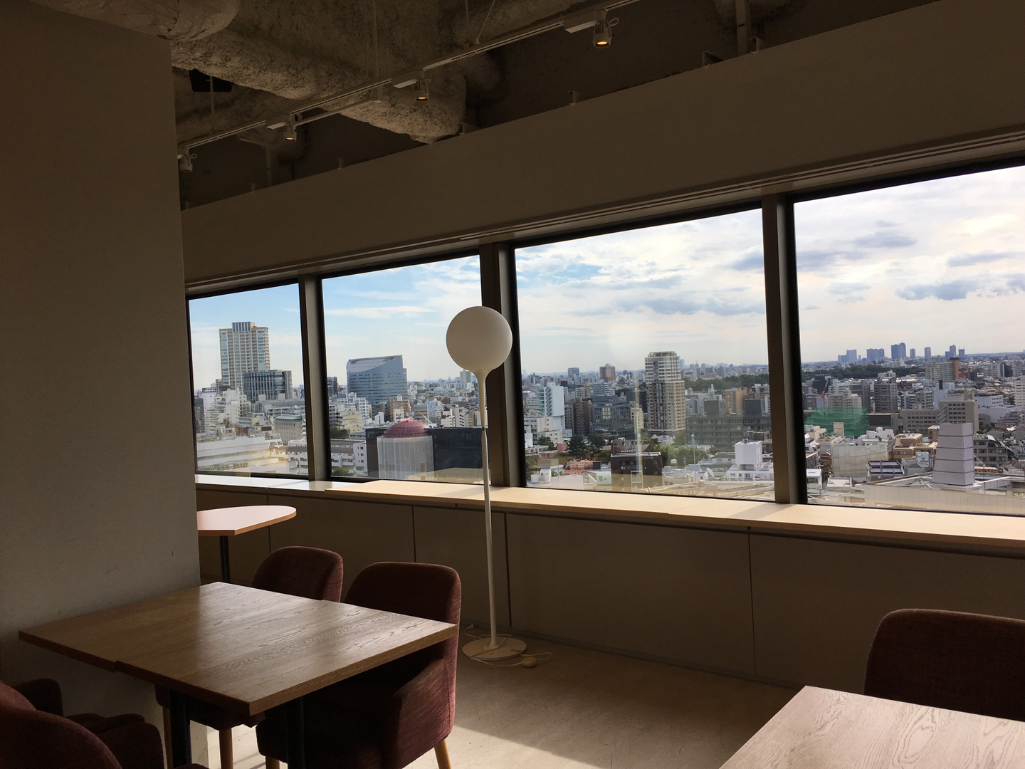 ▲12階からの眺めはクラウドワークスのある4・6階とやはり違いますね…!もちろんここにある机や椅子もワークプレイスグループさん厳選のもの!