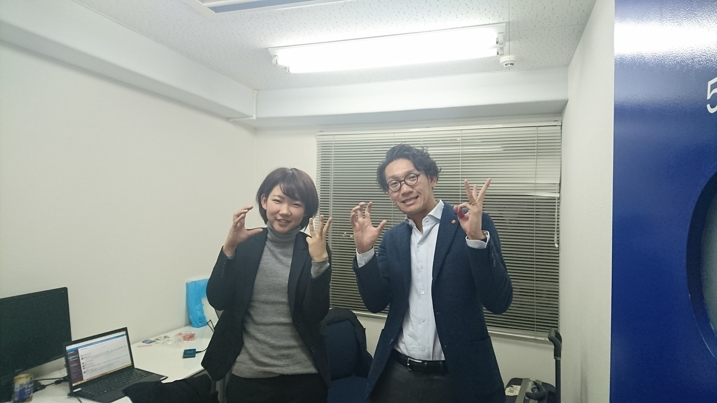 金井:はい。僕自身もその時まだ入社半年だったんですが、2015年12月の頭に僕と事業部長の大類さんとの思い付きで関西拠点を立ち上げることになりました。たださすがに1人ではキツイので、「16卒の内定者で誰か手伝ってくれる人はいないか」と話をした時に手を挙げてくれたのが田中です。その後12月中旬に梅田で初めて会って面談をし、インターンとしてジョインしてくれたのは1月からですね。