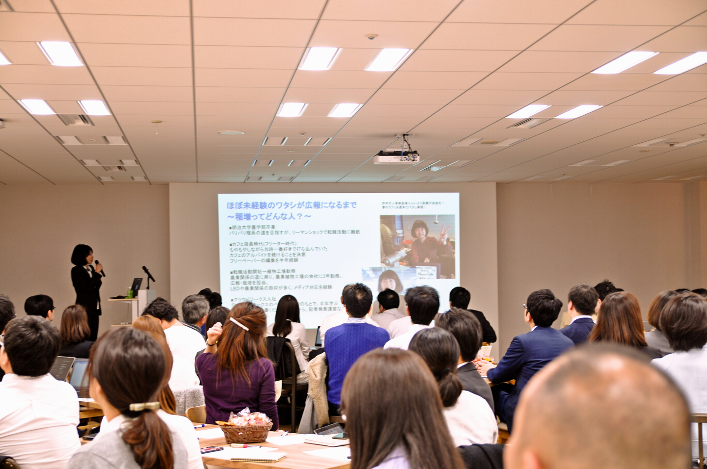 をテーマに、限られた予算の中新規事業「WoW!me」を「コンセプトに自分ごととして共感し、応援したくなる、人に教えたくなる、仲間になりたくなる」仕掛けでPR効果高めた取り組みを紹介。併せてシェアガールとしての活動や、パラレルな働き方など自身をコンテンツとし、会社と自分自身の双方の認知度を高めた事例を紹介させて頂きました!