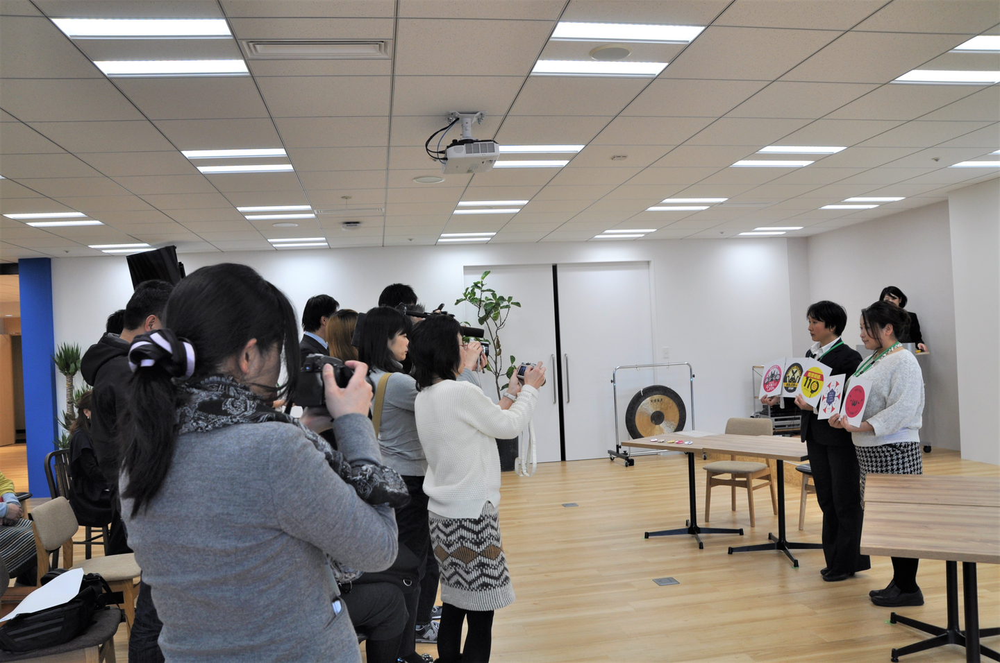 ▼「Stop 痴漢バッジプロジェクト」の記者発表会は多くのメディアにお越しいただきました