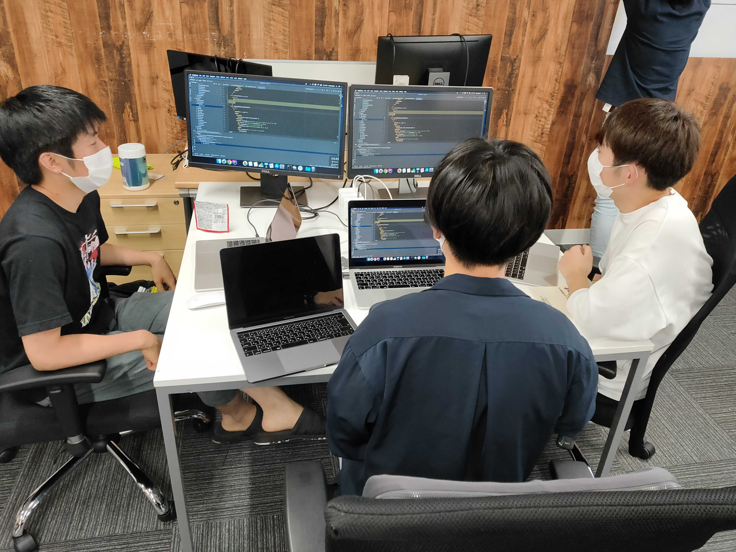 ・今回話すプロジェクトに参加している開発メンバーは6人です。構成は学生5人(3人は新人)+リモート1人です。